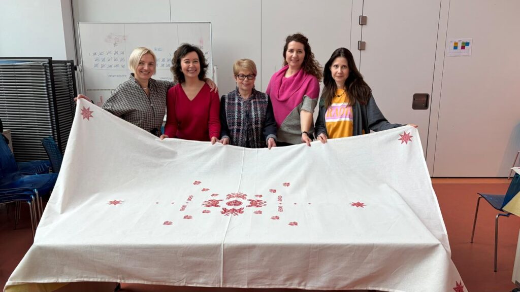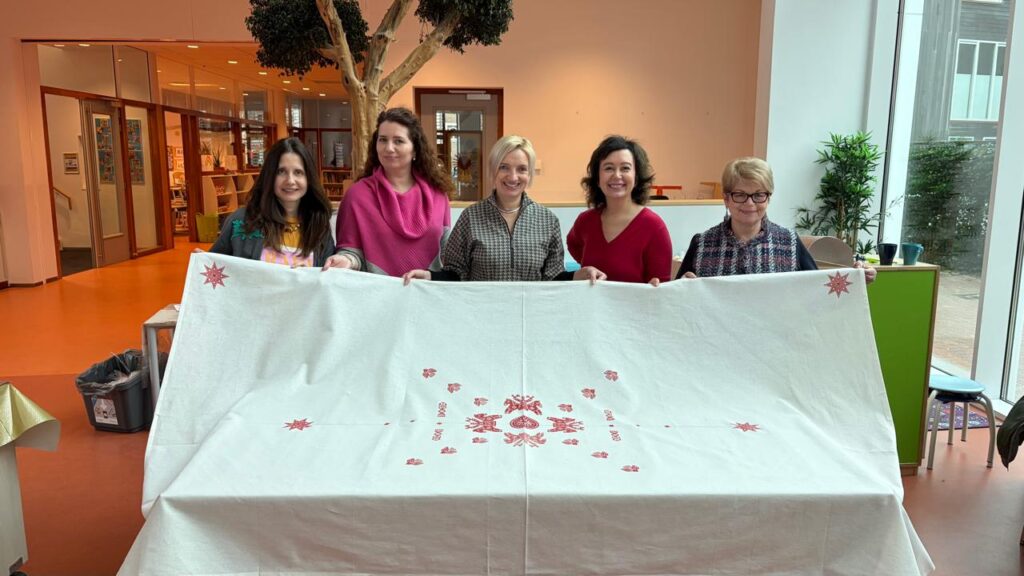 Guided by the talented team of Vytivka Club, participants explored this unique craft through patience, attention to detail, and creativity. Together, we created a collective artwork, a beautifully hand-printed tablecloth, where each pattern carried its own story and every step required care and precision.