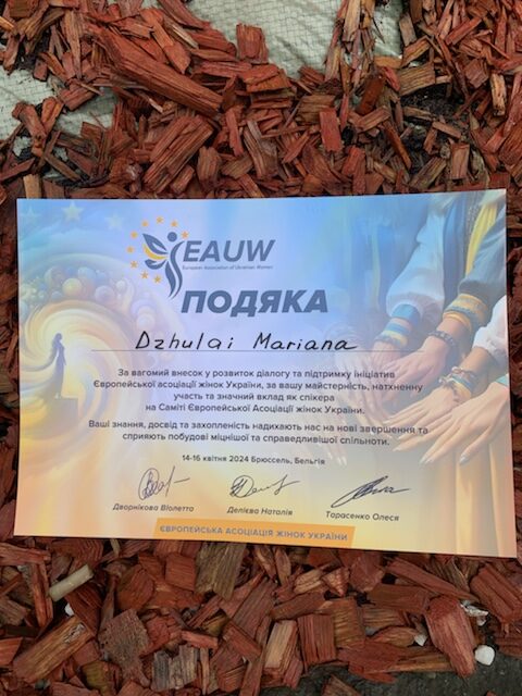 The Summit of the European Association of Ukrainian Women took place on April 15, 2024, at the European Parliament in Brussels and was opened by Vsevolod Chentsov, Head of the Mission of Ukraine to the European Union. The event brought together more than 30 active Ukrainian women from different European countries, including directors of non-profit organisations, mayors of Ukrainian cities, community leaders, entrepreneurs and other professionals. Our director, Mariana Dzhulai was invited as a speaker of the cultural panel, where she presented Kastanje, the Dutch Ukrainian cultural center, and shared the experience of promoting Ukrainian culture in the Netherlands.