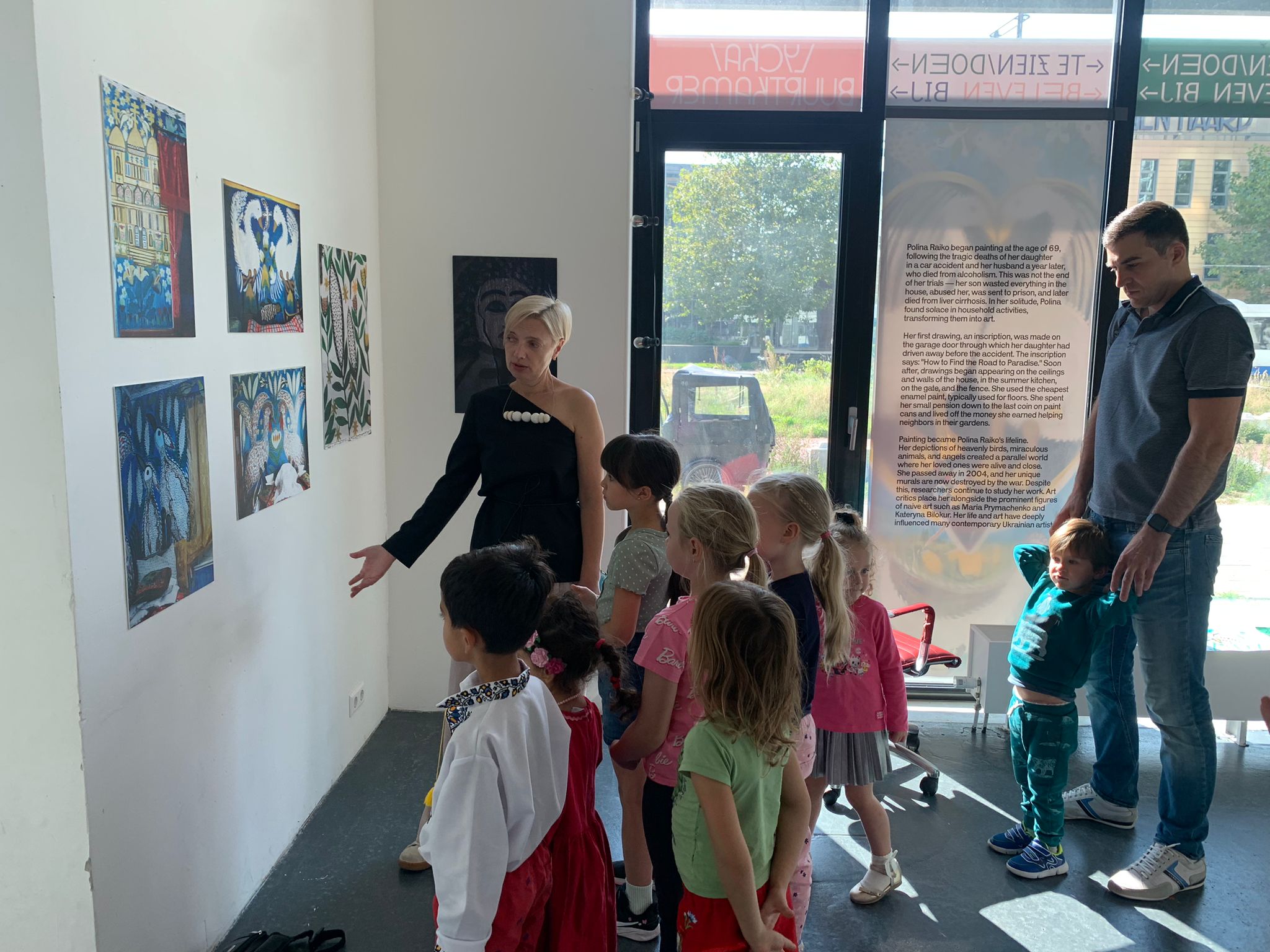 The program included curatorial tours, English-language lectures on global naive art and Polina Raiko’s place within it, and creative workshops for children. At the closing event, the audience was introduced to a special fashion collection by Kherson designer Nataliia Ryzhenko, who had once personally visited Raiko’s painted house and created this collection specifically for the Amsterdam project. A performance by the Makivka Choir, combined with a fashion show, brought together a diverse international audience. Owing to the extensive and varied cultural program, the exhibition resonated widely with visitors.